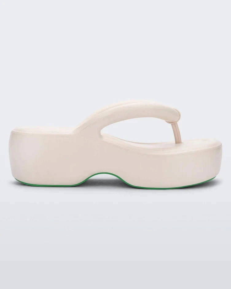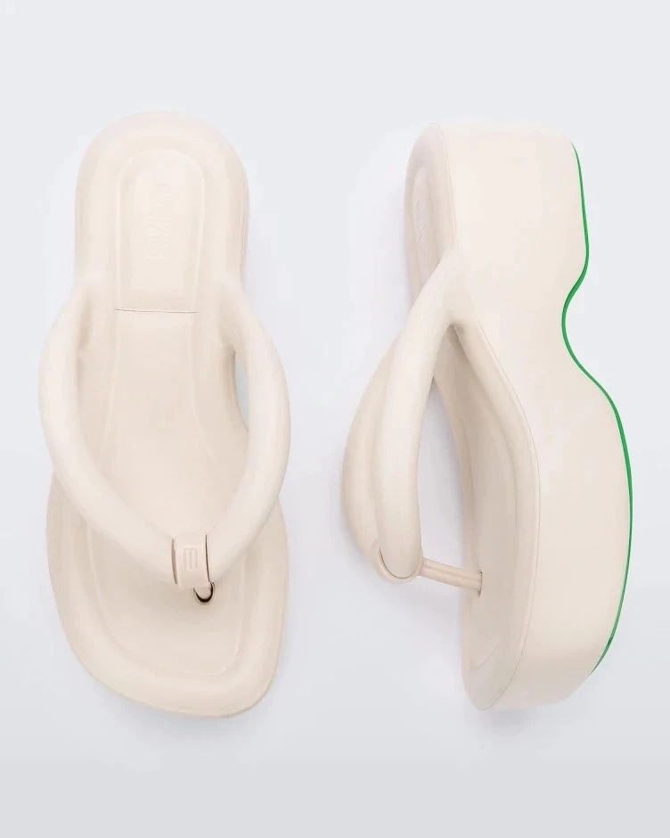 The Melissa Free line represents more than style: it is expression, adventure and environmental awareness. Now, she brings a reinterpretation of the hit Melissa Free Flip Flop, in a platform version full of attitude. The model has a biobased EVA sole made from sugarcane (Melfree), which is light, sustainable and provides maximum comfort.