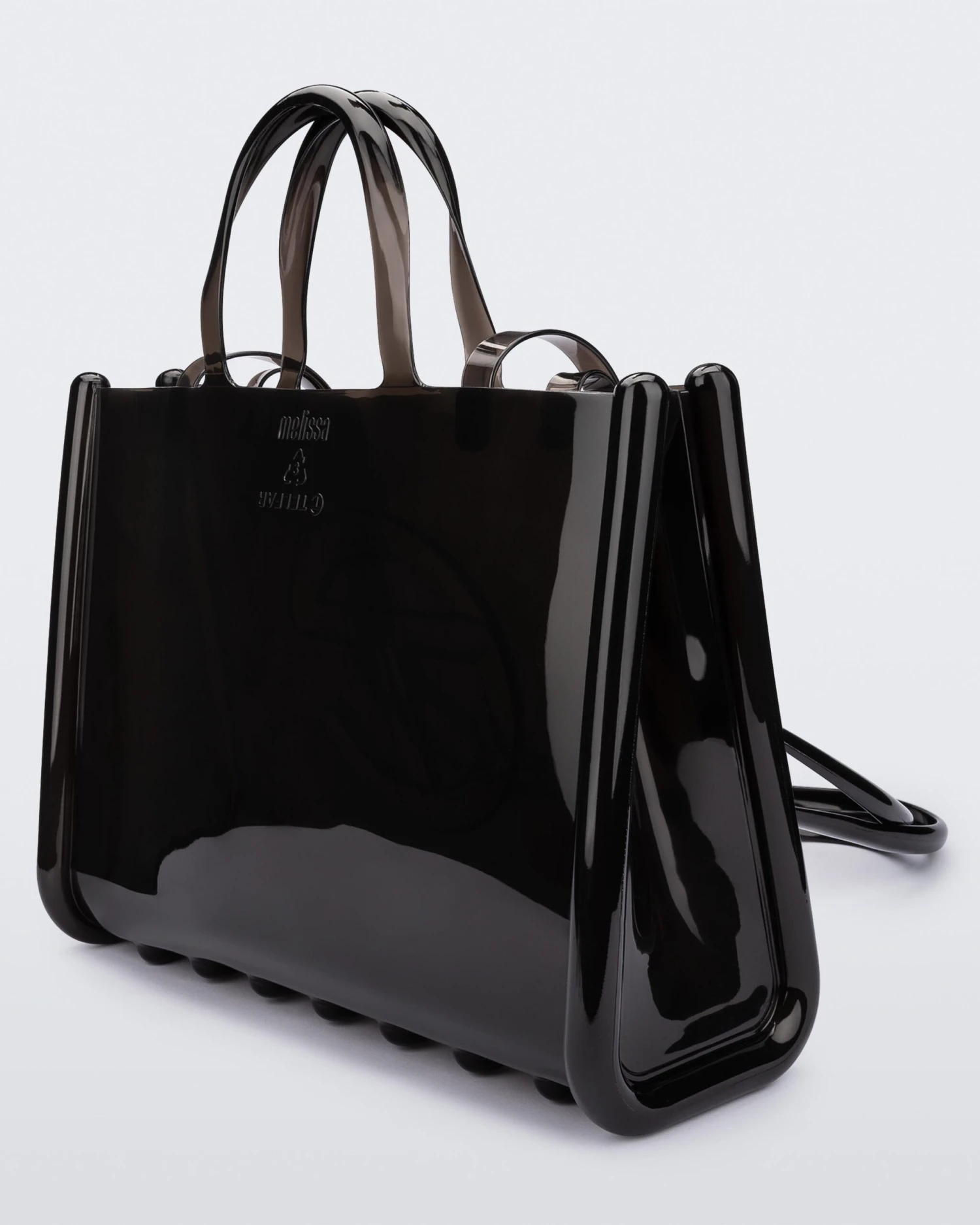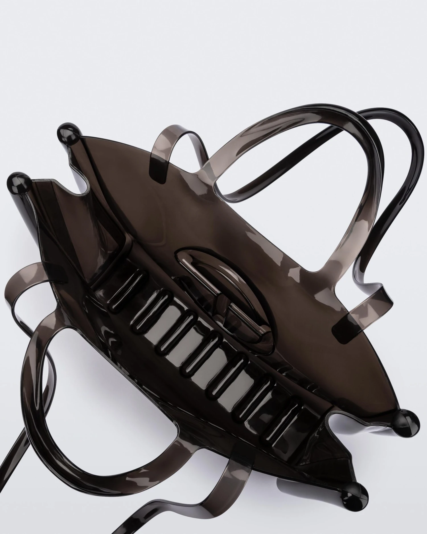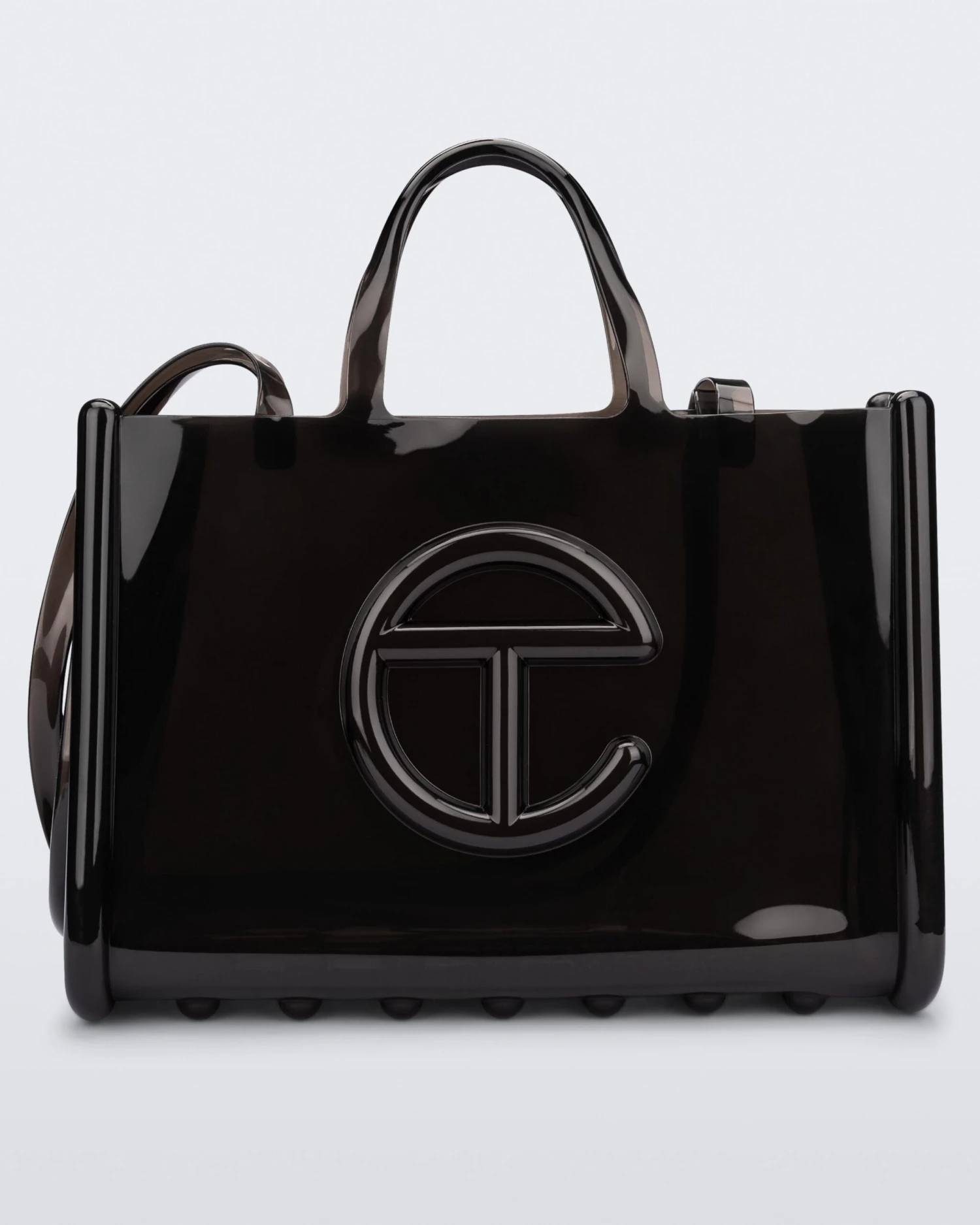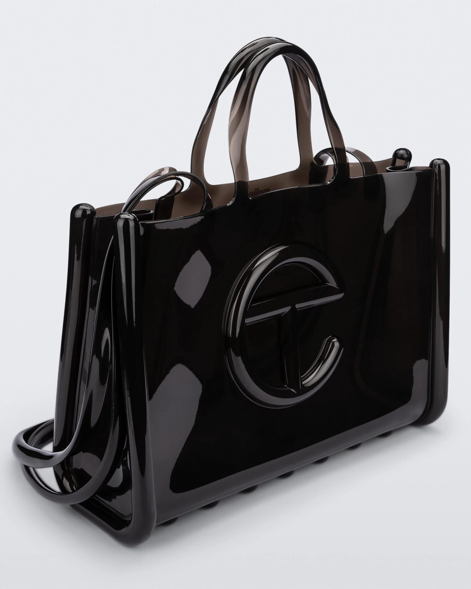 The large Melissa x Telfar Jelly Shopper — features a fluid design and tubular construction. This transparent shopper is water-resistant and concert + festival compliant, making it an instant summer staple. Molded using Melissa’s exclusive Melflex materials, it looks extra bomb with the matching slides.