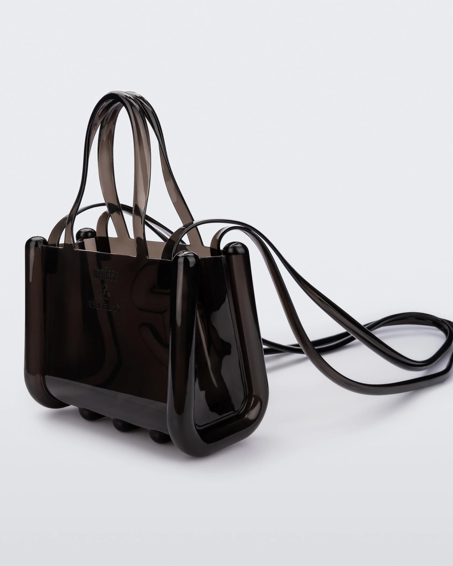 The small Melissa x Telfar Jelly Shopper — features a fluid design and tubular construction. This transparent shopper is water-resistant and concert + festival compliant, making it an instant summer staple. Molded using Melissa’s exclusive Melflex materials, it looks extra bomb with the matching slides.